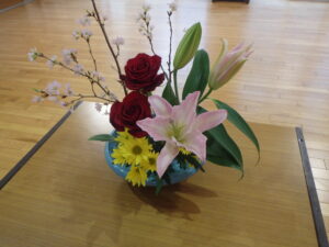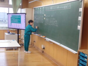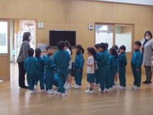 最後に、2名の教員とのお別れの式を行いました。代表児童が言葉を添えて花束を渡しました。