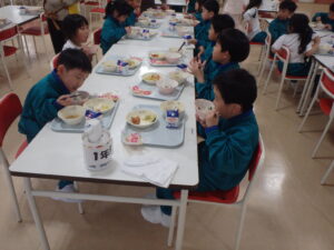 3月18日(水)、音楽科や図画工作科等を担当していた講師が、本校での勤務の最終日となりました。給食後にランチルームで離任式を行いました。児童に、人と人とをつなぐ音楽にこれからも興味関心をもってほしいと話しました。
