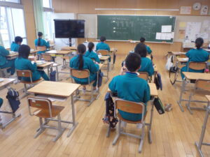 12月18日(木)、わかすぎ級で道徳科の校内研究授業が行われました。自分の名前には、自分を支えてくれている家族の願いが込められていることを知る教材での学習でした。教師の説話や筆者のメッセージ動画の視聴により、家族へ「ありがとう」と伝えたい思いが高まったようです。
