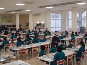 12月15日(月)、4、6年生の欠席が急増したため、本日の給食は、4年生は家庭科室、6年生は教室で食べました。明日からの2日間は学年閉鎖の措置をすることになりました。18日(木)からは元気に登校してくれることを願っています。