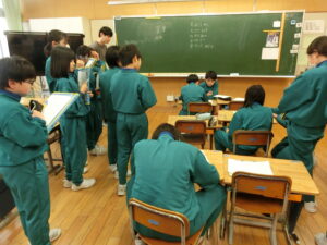 10月22日(水)、3年の校内研究授業の様子です。国語科「共感した手紙を書こう『ちいちゃんのかげおくり』」の学習です。本単元では、主人公である「ちいちゃん」に手紙を書くことを学習のゴールとして、自分で物語の場面を選び、そのときの「ちいちゃん」の気持ちを考えました。本時では、意見の交流を行い、自分の考えをさらに深めていました。