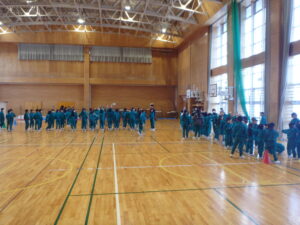 2日目も晴天に恵まれました。「朝のつどい」では、ラジオ体操と学校紹介を行いました。上青小学校を含めた3団体がそれぞれの学校の特色を発表しました。本校では代表2名が、縦割り活動の「なかよしタイム」や「沢スギの日」について発表しました。