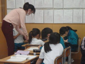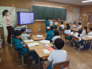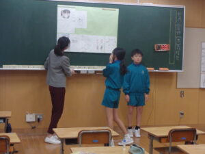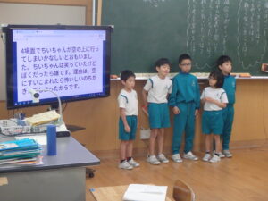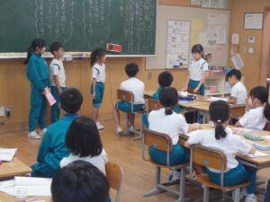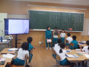 10月22日(水)、3年の校内研究授業の様子です。国語科「共感した手紙を書こう『ちいちゃんのかげおくり』」の学習です。本単元では、主人公である「ちいちゃん」に手紙を書くことを学習のゴールとして、自分で物語の場面を選び、そのときの「ちいちゃん」の気持ちを考えました。本時では、意見の交流を行い、自分の考えをさらに深めていました。