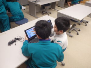 10月22日(水)、久しぶりのクラブ活動を行いました。この日は6年生の卒業記念アルバム用の撮影日で、各クラブの6年生が活動内容が分かるように道具を持って撮影に臨んでいました。