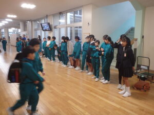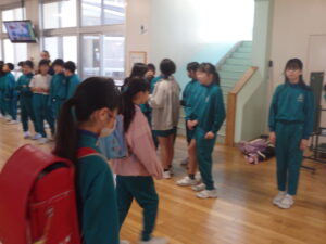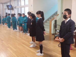 10月29日(水)、5、6年の朝活動は、赤い羽根共同募金の「ありがとうメッセージ」紹介を行いました。入善町社会福祉協議会の桑守様と川瀬様、入善町民生委員児童委員協議会会長の袖野様に来校いただき、赤い羽根共同募金の目的等について説明していただきました。今回は、特に「災害への備え」として災害等準備金として貯蓄していることや、被災地への災害ボランティア活動として使われていることを話されました。また、民生委員児童委員の活動についても募金が活用されていることも説明していただきました。児童は、入善町や富山県をよりよくするための募金であることの理解を深めることができました。