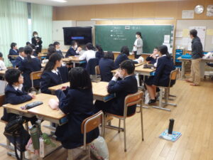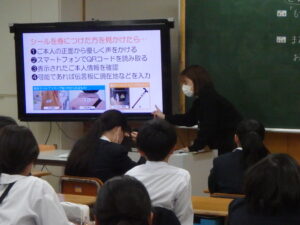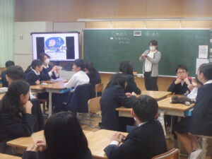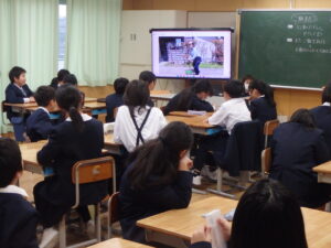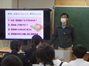 11月18日(火)、5年児童は3限に「認知症サポーター養成講座」を行いました。入善町役場保険福祉課の佐々木様と在宅福祉複合施設代表の亀田様に来校いただき、認知症ついての学習をしました。食事と道に迷った場面を動画で視聴し、どのように接したらよいかについてグループで話し合いました。穏やかで丁寧な言葉遣いと態度を心がけ、本人の気持ちに寄り添うことが大切であることが分かりました。佐々木様、亀田様、ありがとうございました。