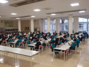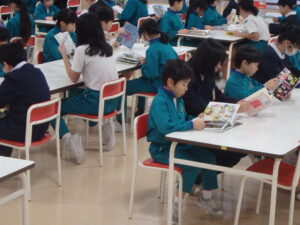 11月28日(金)、今月の全校読書の様子です。一人一人が自分の読みたい本を持ってランチルームに集まり、静かに読書をしています。