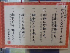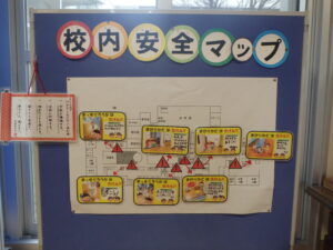 1月19日(月)、玄関前廊下には保健委員会の取組として、「校内安全マップ」を掲示し、全校児童に安全な学校生活を送ることを呼びかけています。「あわてず安全!けがをしないぞ!五か条」をみんなで気を付けながら、3学期も健康に生活したいものです。