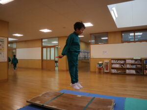 先週から、縄跳び運動が盛んにおこなわれています。技術の向上を目指して校内の3か所に「ジャンピングボード」を設置しています。利用することで、より高く跳ぶことができるので、二重跳び系の技の習得に役立ちます。3学期に自分の技術を高め、できる技を増やせるといいですね。