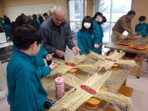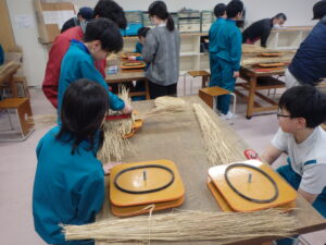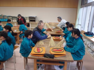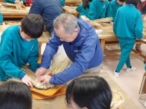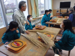 さんだわらづくりは手順が多く、細かな作業が大変そうでしたが、講師の方々の指導のおかげでスムーズに作業ができて、自作のさんだわらを完成させることができました。入善ジャンボスイカ組合の方々には、材料のわらや道具を準備したいただいた上に、児童に丁寧に指導していただき大変感謝しております。ありがとうございました。