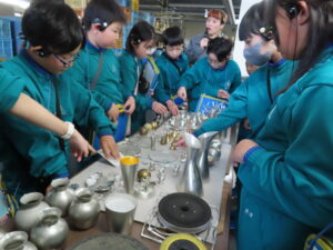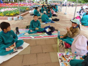 4月24日(金)、5、6年は「株式会社 能作」と砺波チューリップ公園に行きました。「能作」では工場見学や鋳物体験をしました。砺波チューリップ公園では、チューリップフェアの会場になっており、色とりどりのチューリップを観察しました。また、「ふわふわドーム」などの遊具でも楽しく遊びました。富山県の伝統工芸や農業の様子など、たくさんのことを学ぶことができました。