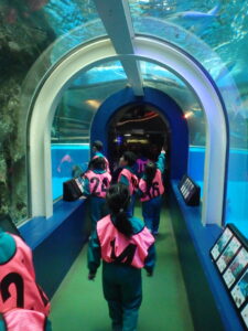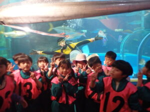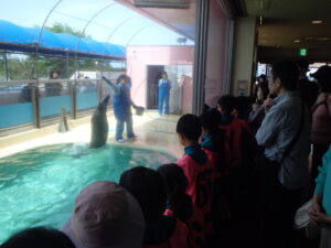 4月24日(金)、1、2年生は魚津水族館とミラージュランドに行きました。魚津水族館では、「おさかなショー」や「アザラシお食事タイム」等を見学することができました。風が強かったので、昼食は室内で食べました。午後からはミラージュランドに行き、乗り物や遊具等で楽しみました。グループで仲良く行動することが目当てのため、特に2年児童がリーダーシップを発揮していました。