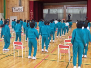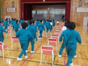 4月27日(月)、4~6年児童が合同体育を行いました。入善町体育大会の種目になっているハードル走の技能向上につながる「身体操作」や椅子を用いた練習を行いました。