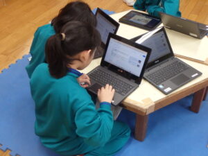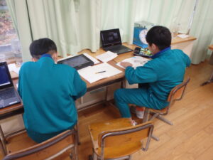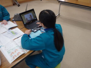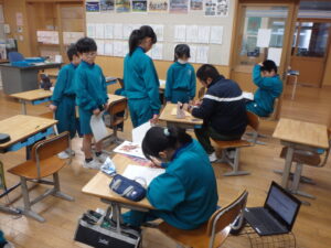 11月26日(水)、4年国語科「工芸品のみりょくを伝えよう」と、算数科「直線の交わり方やならび方に注目して調べよう」の学習の様子です。国語科と算数科の2つの単元について、自分で学習の進め方を決めて主体的に取り組んでいます。この学習では、「誰と、どこで、何を」学習するかを選択するなど、自分に合った学び方を調整しながら毎時間取り組んでいます。