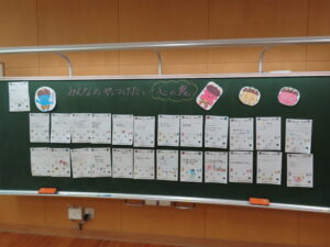 2月3日 心の鬼をやっつけよう!(2年) 2月3日(火)、2年生は黒板に自分のやっつけたい「心の鬼」を掲示して、新聞紙を丸めて作った大きな豆を投げ、よりよい自分に成長しようという取組を行いました。まだまだ寒い日が続きますが、明日は立春です。もう少しで春の足音が聴こえてくるのでしょうか。