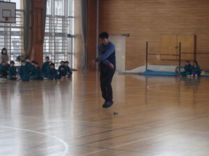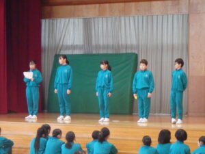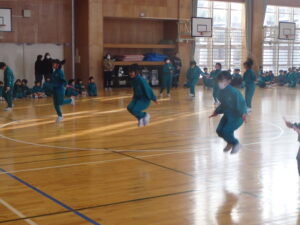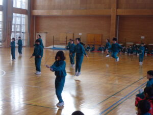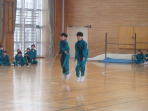 2月4日(水)、今朝の「さわやかタイム」は、「なわとび集会」を行いました。各学年では、体育の学習や休み時間に縄跳び運動に取り組んでいます。この集会では日頃の練習の成果を発揮しようと、どの児童も張り切って取り組んでいました。他学年の実技を見ることも、今後の技能向上の参考になると思います。連続で跳ぶ回数を増やしたり、より難しい技に挑戦したりと、楽しみながら取り組んでほしいです。