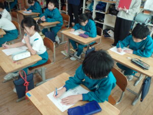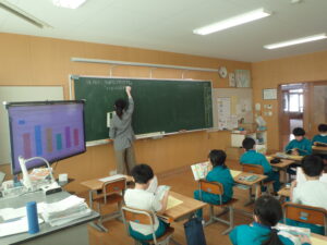 2月4日(水)、3年の道徳科では、自分と相手には違いがあることを受け止め、理解し合って生活していこうとする態度を育むことをねらいとして、「りつとにじのたね」の教材を用いて学習しました。登場人物(動物)の言動の変化から、自分自身を振り返り、「ちがうってすてき」についての自分の思いをもちました。