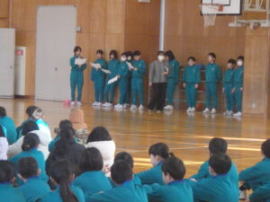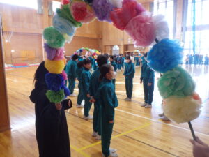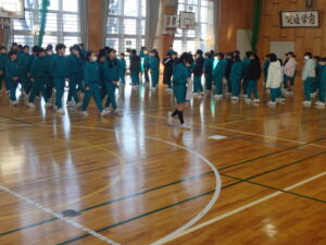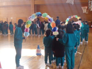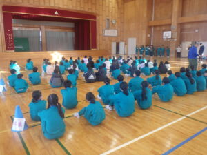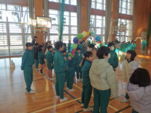 2月13日(金)、今朝の「さわやかタイム」は、1~5年児童が体育館に集合して、「6年生を送る会」で6年児童が退場するときの並び方の練習を行いました。実行委員の5年児童の指示のもとで、1~4年児童が移動する練習でした。全校児童に説明したり誘導したりすることは難しいことですが、これもよい経験になると思います。がんばれ、5年生。