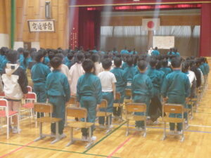 3月5日(木)、卒業証書授与式の全体練習を行いました。今日は式で歌う国歌「君が代」と「さようなら」の練習を行いました。