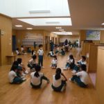 その後、簡単なじゃんけんゲームをしました。グループによってじゃんけんゲームの中身はちょっと違います。「リーダーとじゃんけんをして負けた人から座る」「○年生とじゃんけん」「勝ち抜け」など、工夫していました。